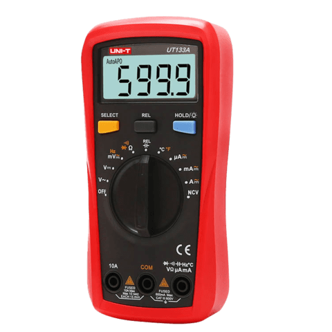 Multímetro digital de mão – Visor LCD até 6000 conta – Medição de tensão em DC e AC até 600V – Medição de intensidade DC e AC até 10A – Medição de resistência e capacitância – Buzzer para teste de continuidade