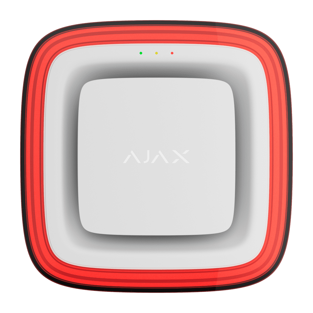 sirene sem fios com alarme sonoro e visual – Notificações instantâneas – Volume do som até 100 dB – 32 diferentes tons de som – Controlo e configuração remotods em aplicações Ajax – Baterias substituíveis