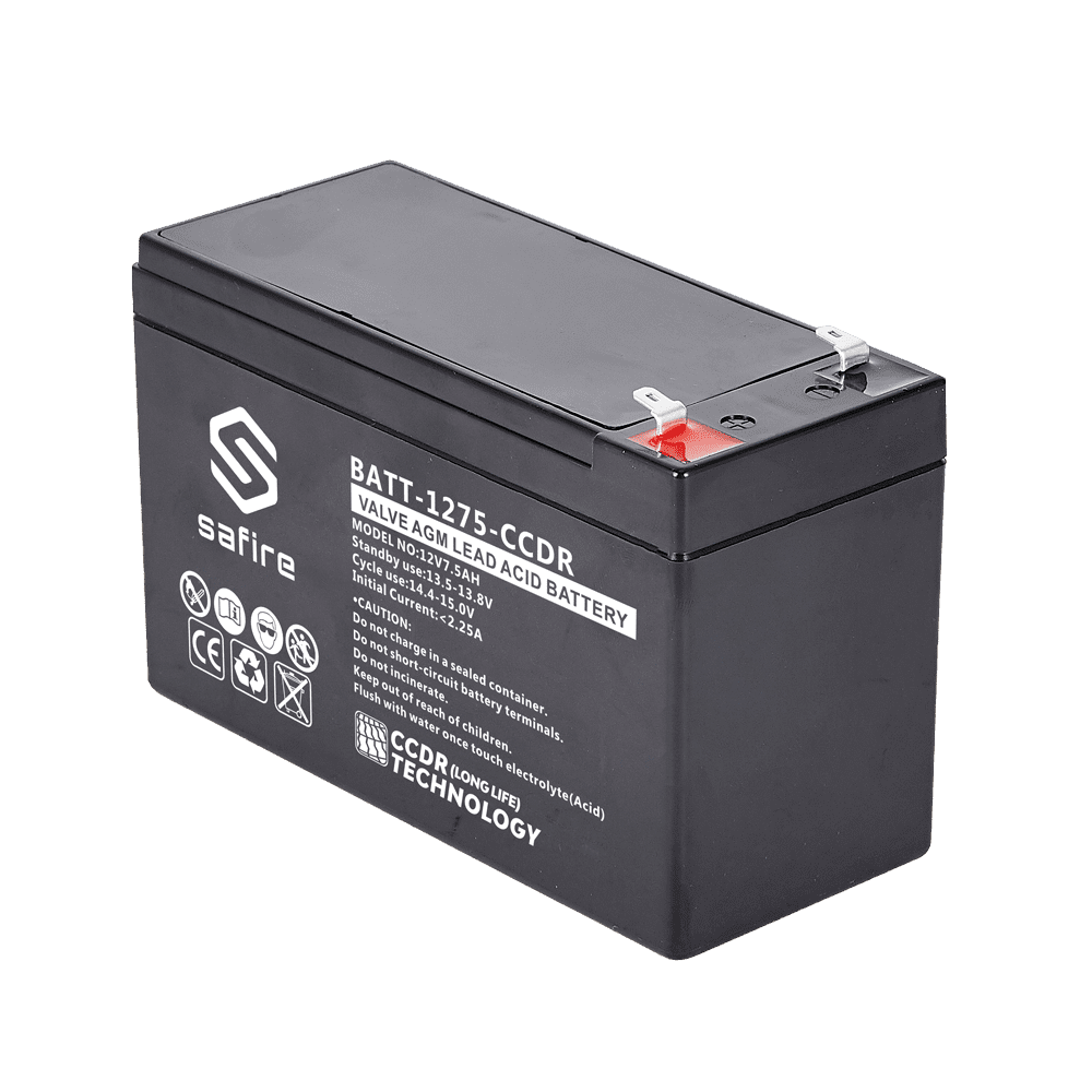 Bateria recarregável – Tecnología chumbo ácido AGM – CCDR – Tensão 12V – Capacidade 7.5Ah – 100 x 65 x 151 mm / 2.05 Kg – Para backup ou utilização directa