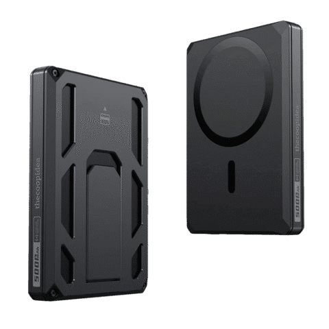 Power Bank com wallet magnética – Capacidade 5000mAh – Entrada USB-C – Saídas USB-C e sem fios – Certificado com FindMy – Carregamento rápido de dispositivos 2 ao mesmo tempo