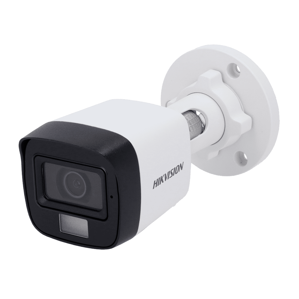 Hikvision cámara Bullet 4en1 Gama Value – Resolución 2K (2304×1296) – Lente 2.8 mm – Luz hibrida (IR 30 m, luz blanca 20 m) – Audio sobre cable coaxial | Micrófono integrado – Impermeable IP67 | Metal