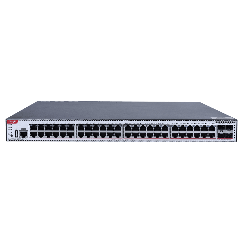 WIS Ruijie Switch Nuvem Gerenciável L3 – 48 portas PoE RJ45 + 4 portas SFP+ – 48 Portas Gigabit + 4 Portas 10G – VLAN/Port Isolation/STP/RSTP/ACL/QoS/RIP/BGP – LACP/DHCP Snoop/IGMP Snoop/RIP/OSPFv2/OSPFv3 – Pode ser montado em rack