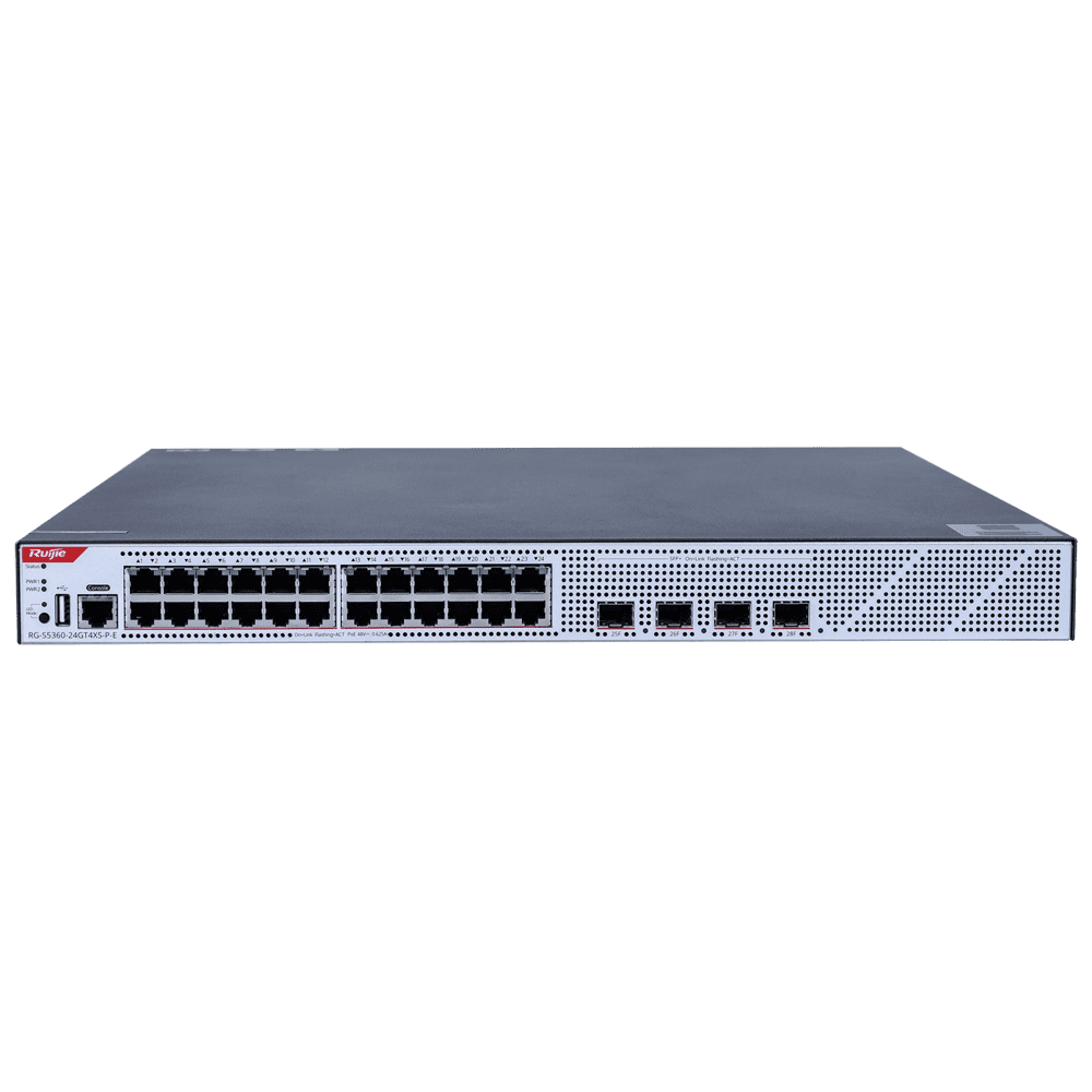 WIS Switch Cloud Gerenciável L3 – 24 portas PoE RJ45 + 4 portas SFP+ – 24 Portas Gigabit + 4 Portas 10G – VLAN/Port Isolation/STP/RSTP/ACL/QoS/RIP/BGP – LACP/DHCP Snoop/IGMP Snoop/RIP/OSPFv2/OSPFv3 – Pode ser montado em rack