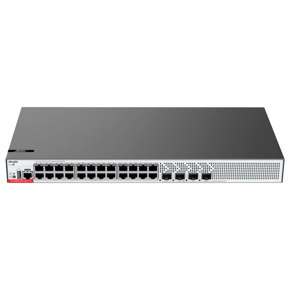 | Interface | 24 Portas RJ45 + 4 Portas SFP + 1 Porta de consola + 1 Porta USB |