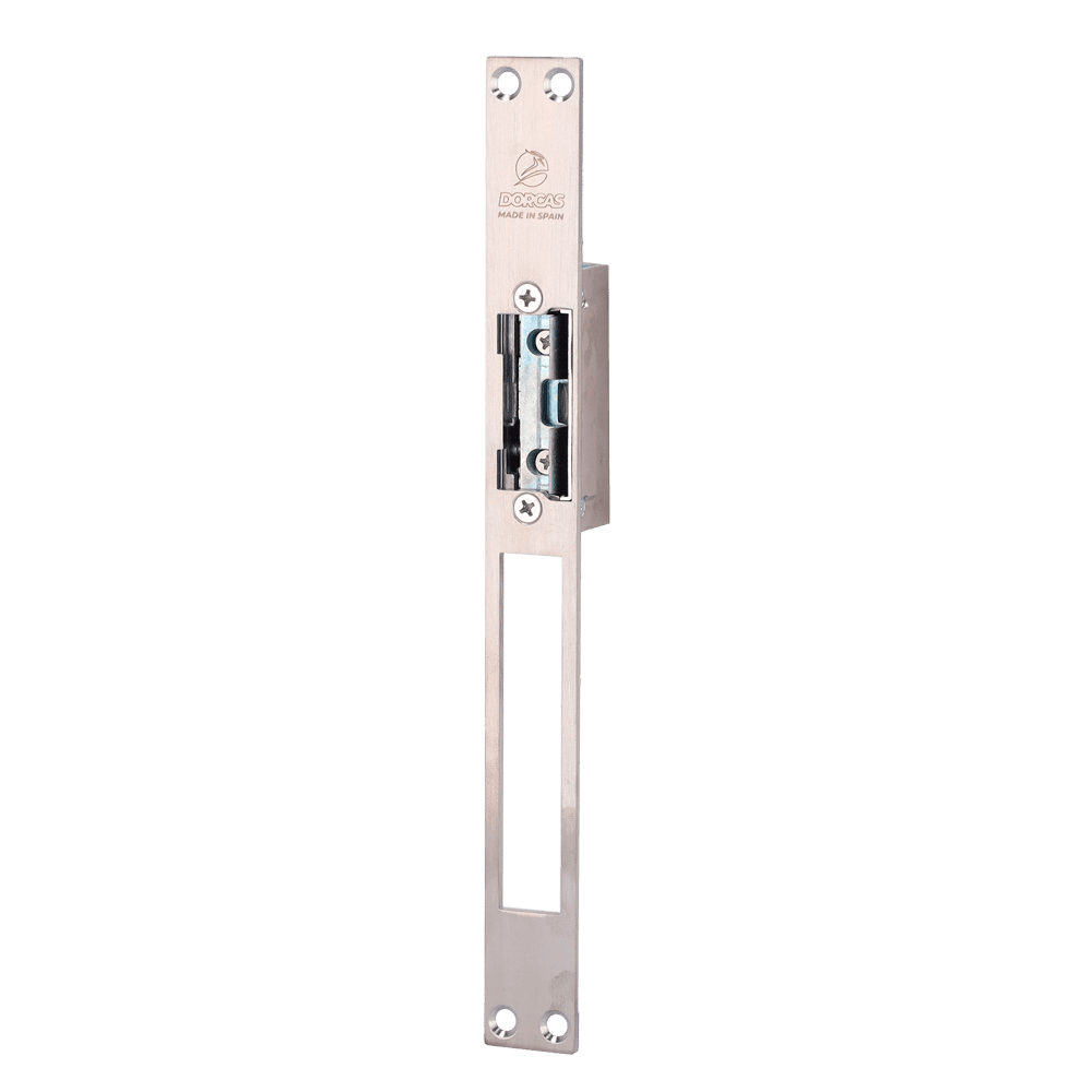 Abrepuertas eléctrico Dorcas – Para puerta sencilla | Pestillo radial regulable – Modo apertura Fail Secure (NO) – Fuerza de retención 330 kg – Alimentación AC/DC 10-24V – Hembrilla | Instalación sin corte
