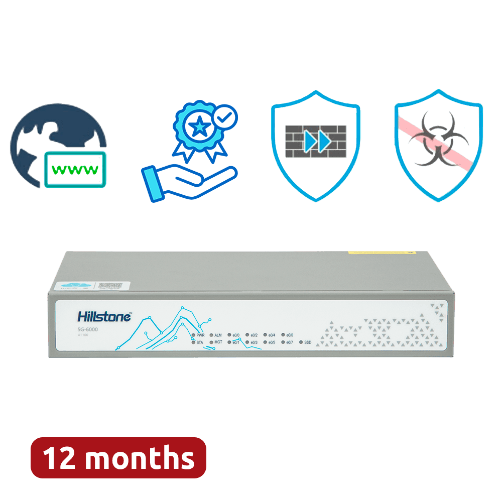 A Hillstone SG-6000-A1000-HWBDL1-IN12 é uma firewall de próxima geração (NGFW) compacta e potente, concebida para fornecer proteção avançada a redes de pequenas e médias empresas, combinando deteção proativa de ameaças, controlo granular de aplicações e operações de segurança automatizadas.