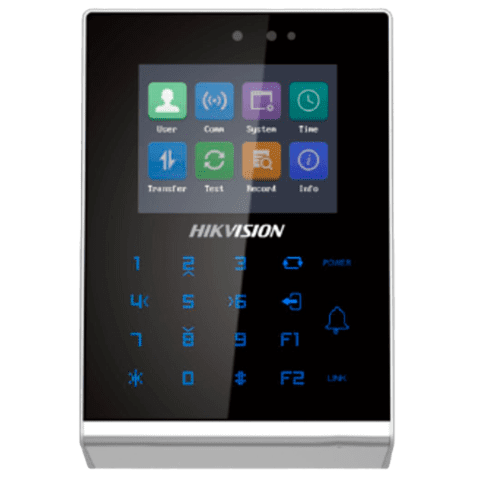 Controlo de acesso e presença – Cartão EM e PIN – 100.000 utilizadores | 300.000 registos – TCP/IP, WiFi, USB, RS485 e Wiegand – 2.8″ TFT | Controlador integrado – iVMS-4200 | Hik-Connect