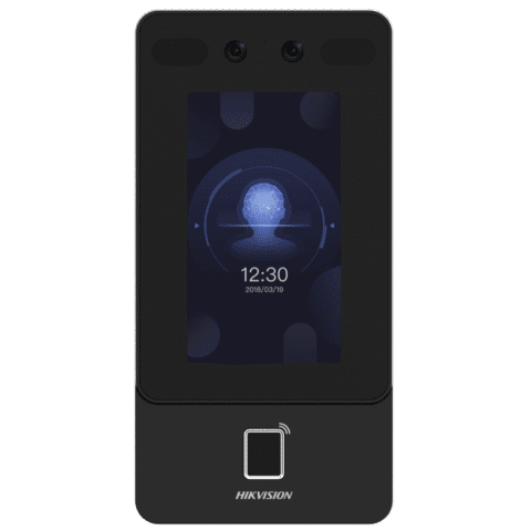 Controlo de acesso e presença – Facial, impressão digital, MF-card, QR e PIN – 1.500 utilizadores | 150.000 registos – TCP/IP, WiFi, USB, RS485 e Wiegand | IP65 – Controladora integrada (sensor, botão de pressão e relé) – iVMS-4200 | Hik-Connect