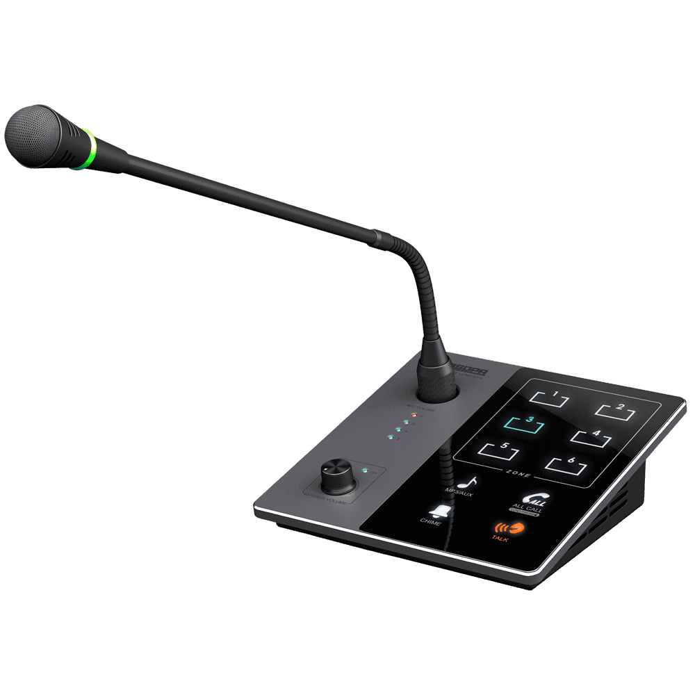 Microfone de mesa – Botão de pressão para anúncios – Até 6 microfones em cadeia – Alimentação através de amplificador – Compatível com DSPPA-DMA6250U – Compatível com DSPPA-DMA6500U