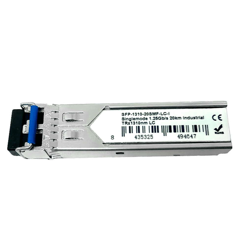 Módulo transcetor SFP industrial – TRx 1310 nm – Fibra monomodo – Conector LC duplex UPC – Máximo 20 km – 1.25Gb/s – 1000Base-LX