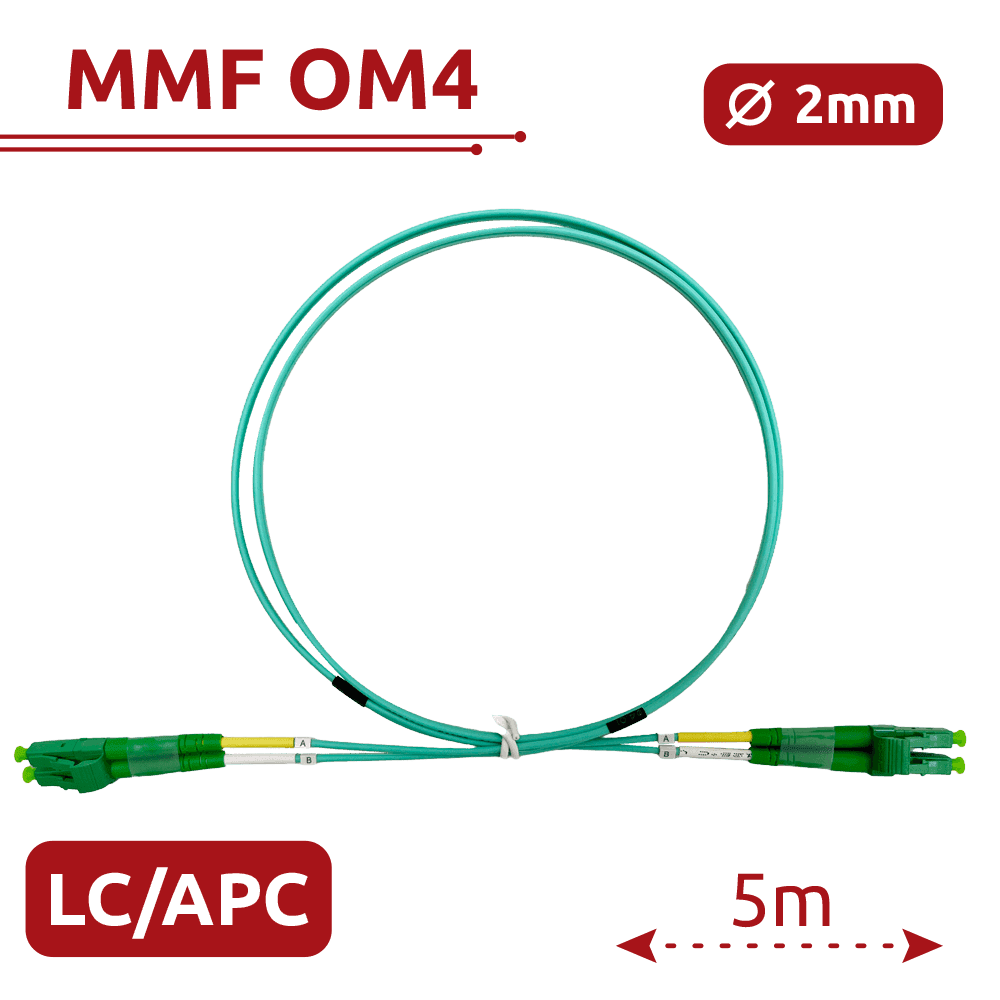 Cabo de ligação de fibra ótica – Fibra multimodo OM4 – Conector LC APC duplex – Comprimento 5m – Coberta LSZH – Compatibilidade genérica