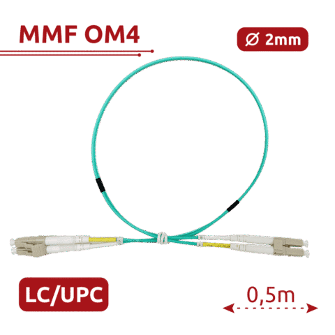 Cabo de ligação de fibra ótica – Fibra multimodo OM4 – Conector LC duplex UPC – Comprimento 0.5m – Coberta LSZH – Compatibilidade genérica