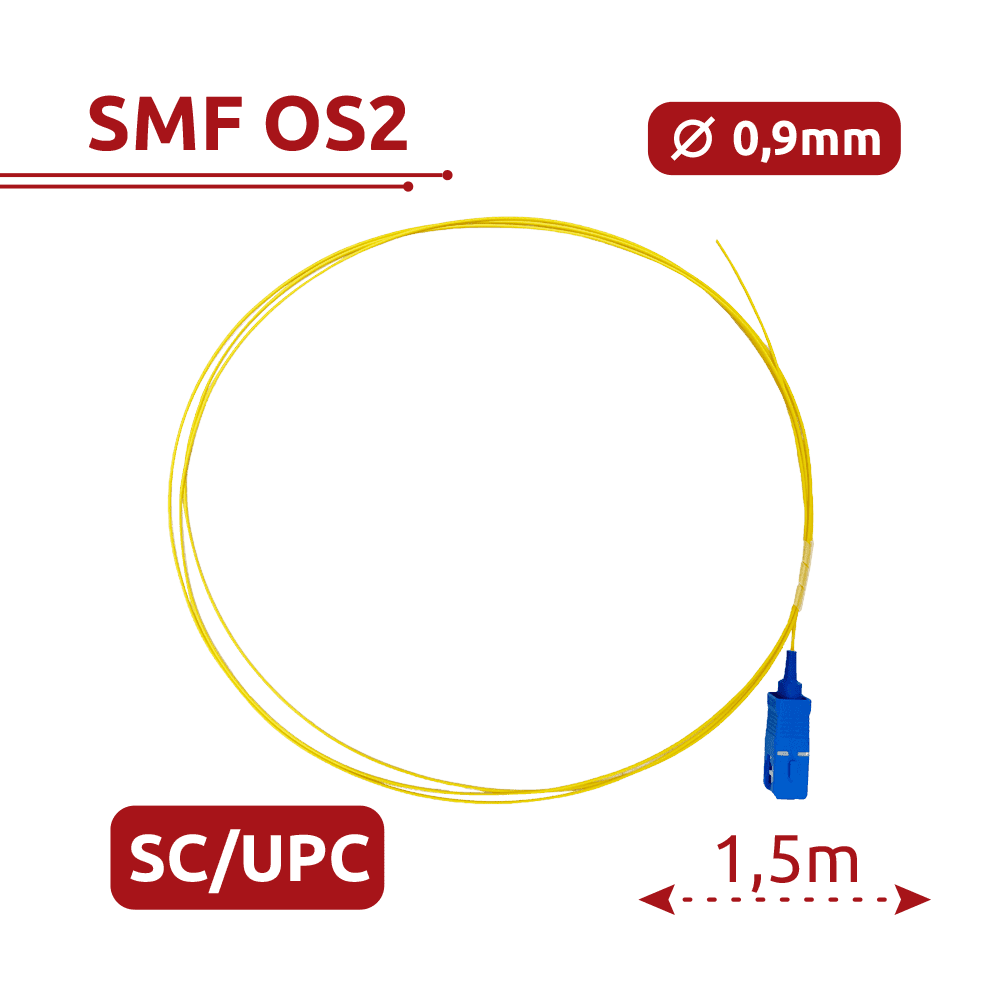 - Pigtail de fibra SC (UPC) monomodo OS2