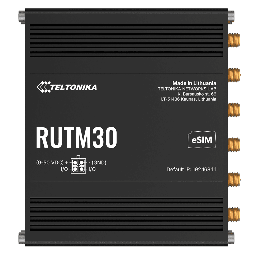El Teltonika RUTM30 es un router 5G industrial robusto, seguro y polivalente, perfecto para aplicaciones que requieren velocidad avanzada, conectividad redundante, gestión remota y resistencia en entornos industriales. Incluye conectividad 5G Sub-6GHz (compatible con 4G/3G), doble SIM física y eSIM con conmutación automática, y Wi-Fi 5 de doble banda para alta capacidad. Su bajo consumo, compatibilidad con PoE pasivo y su amplio rango de alimentación lo posicionan como una solución eficiente en despliegues críticos de IoT, videovigilancia o automatización.