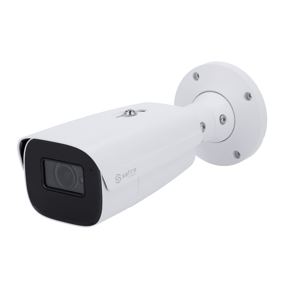 Safire Smart – Gama de câmaras IP Bullet LPR – Resolução 4 Megapixel (2592×1520) – Lente Motorizada 8-32 mm | Audio | IR 100m – Reconhecimento das inscrições / Gestão de listas – Impermeabilização IP67 | PoE (IEEE802.3af) |Alarme