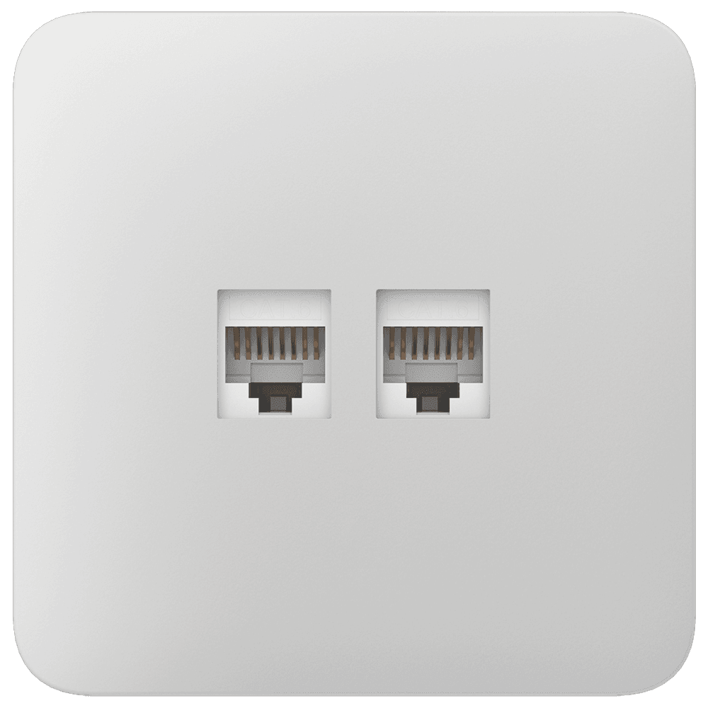 A Ajax Outlet (LAN) é uma base de tomada Ethernet de duas portas que suporta a transferência de dados a alta velocidade compatível com cabos CAT.6 e CAT.5e,, o que a torna uma solução ideal para transmissão de vídeo 4K e outros requisitos de elevada largura de banda. A instalação é rápida e fácil, uma vez que se encaixa numa caixa de montagem padrão e não requer alterações da cablagem existente.