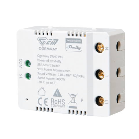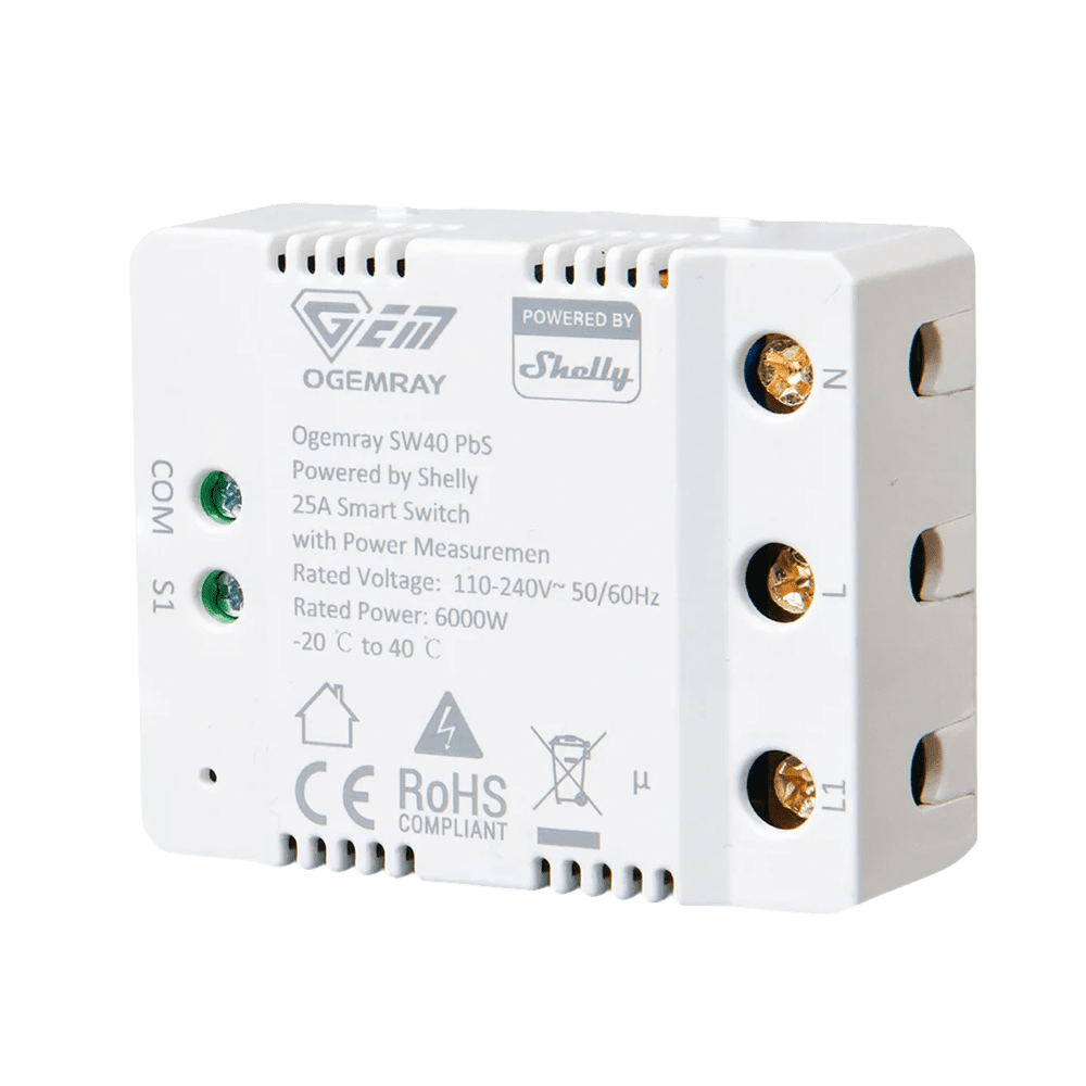 Ogemray Smart Relay 25A – WiFi 2.4 GHz / Bluetooth – Relé Inteligente – Medidor de consumo – 1 saída até 25A / 6000W – Compatível com Alexa e Google