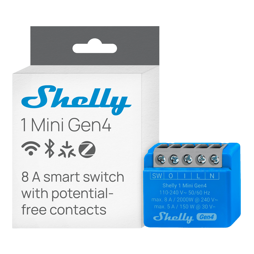 Shelly 1 Mini Gen4 – Wi-Fi 2.4 GHz / Bluetooth / Zigbee – Interruptor inteligente – Suporta 110-240 V~24-48 V12 V – Fornece contactos secos – Compatível com Alexa e Google