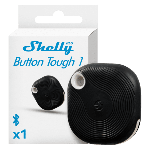 Shelly Blu Button Tough 1 Preto – Bluetooth – Permite o controlo de eletrodomésticos – Resistente a golpes, salpicos e poeiras – Atenuar e ativar cenas – Compatível com Alexa e Google