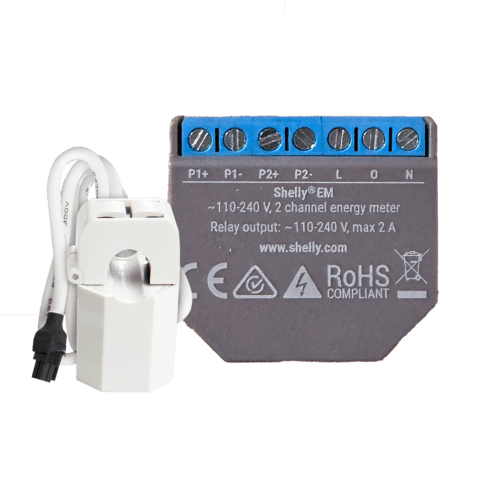 Shelly EM + 50A – WiFi 2.4 GHz IEEE802.11 b/g/n – Medidor de consumo – Suporta 110-230 V – Ideal para habitação – Compatível com Alexa e Google