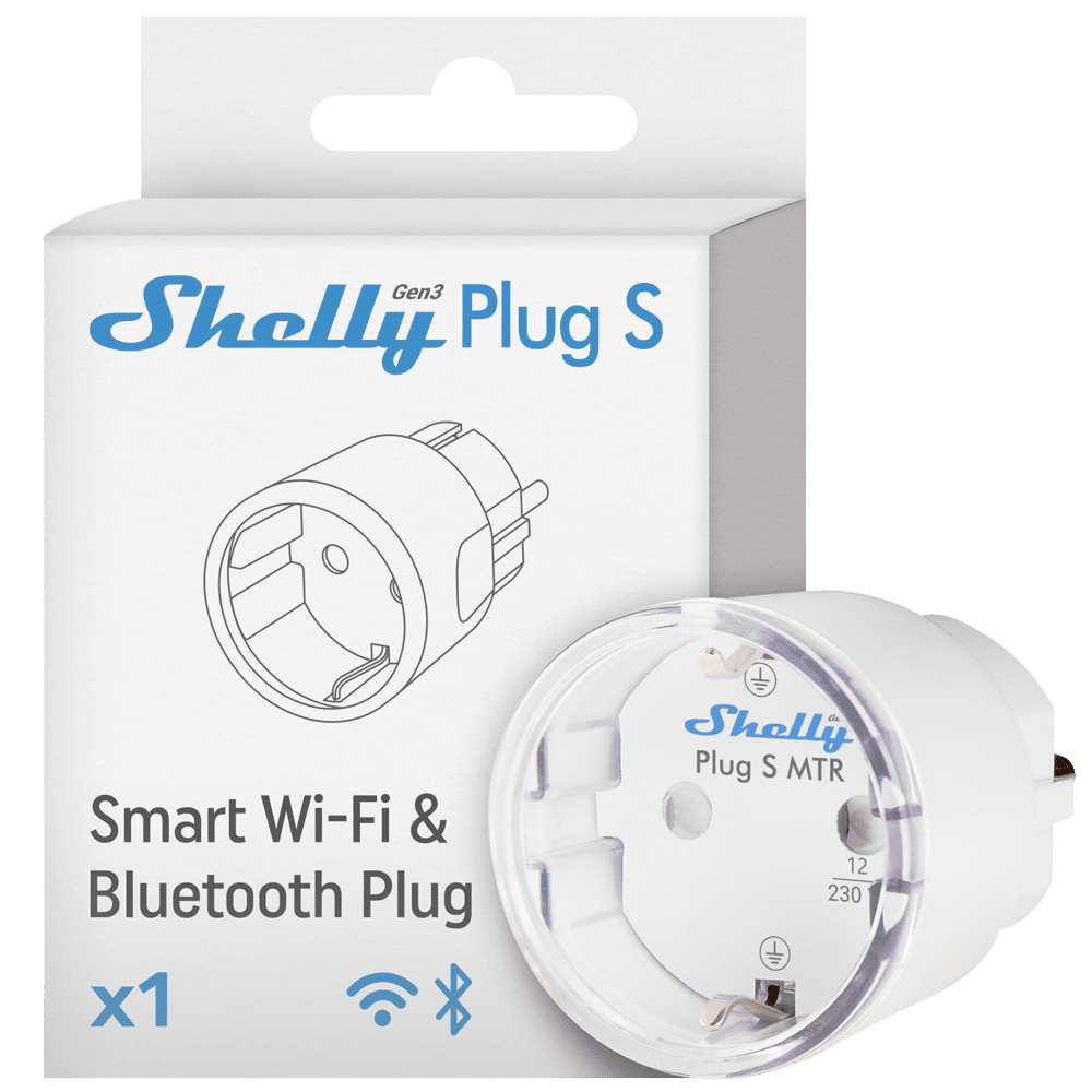 Shelly Plug S MTR Gen3 (White) – WiFi 2.4 GHz IEEE802.11 b/g/n / Bluetooth – Medidor de consumo – Suporta 220 – 230 V – Adequado para domótica de vivendas – Compatível com Alexa, Google e Apple
