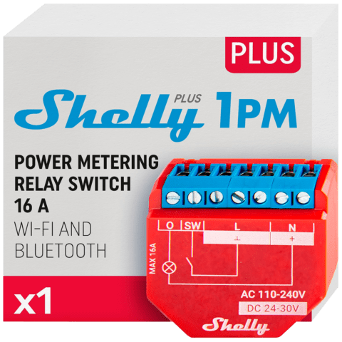 Shelly Plus 1PM – WiFi 2.4 GHz IEEE802.11 b/g/n / Bluetooth – Interruptor inteligente – Suporta 110-240 V / 24V – Medidor de consumo – Compatível com Alexa e Google