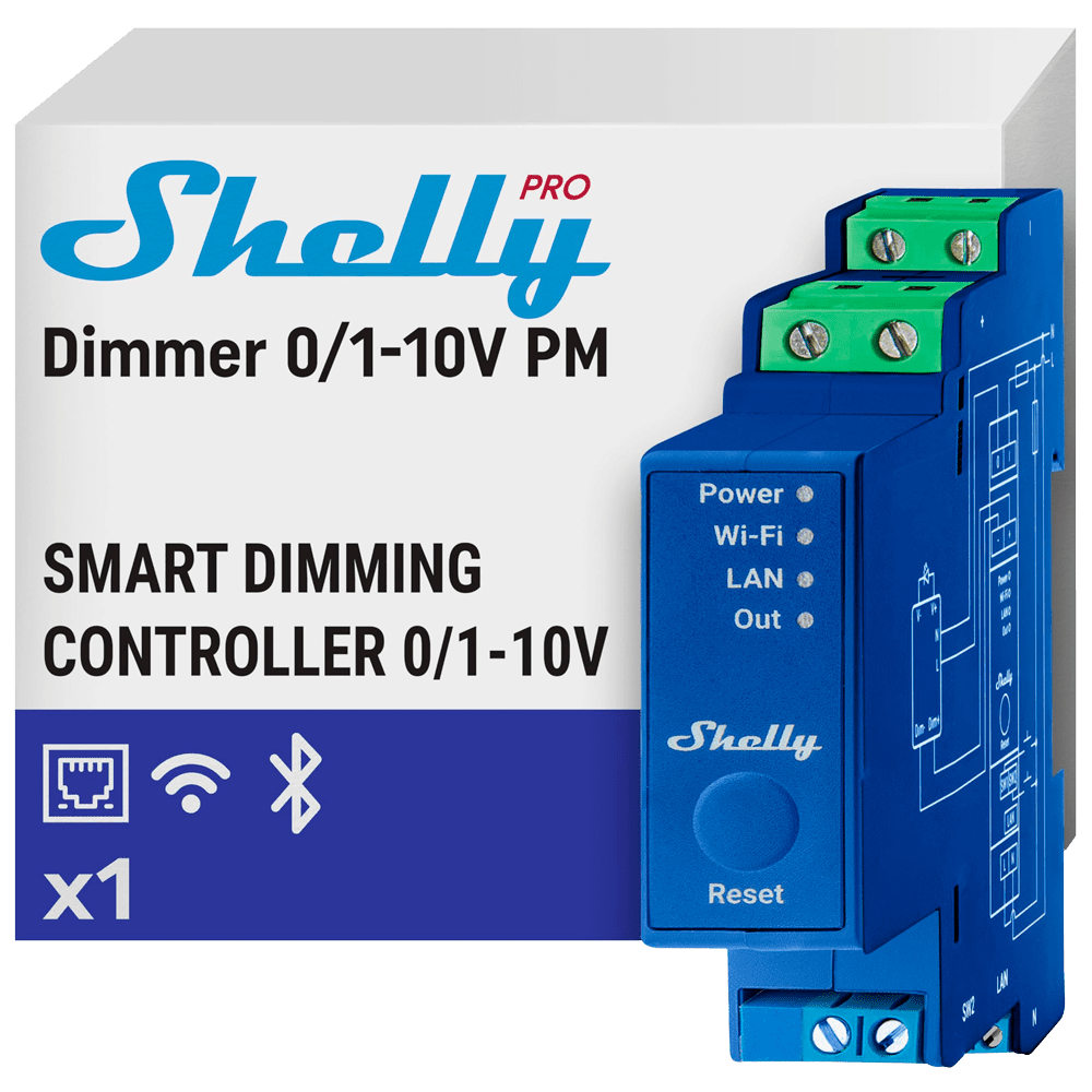 Shelly Pro Dimmer 0/1 – 10V PM – WiFi 2.4 GHz IEEE802.11 b/g/n / Bluetooth – Atenuador inteligente para calha DIN – Suporta 110-240 V – Medidor de potência – Compatível com Alexa e Google