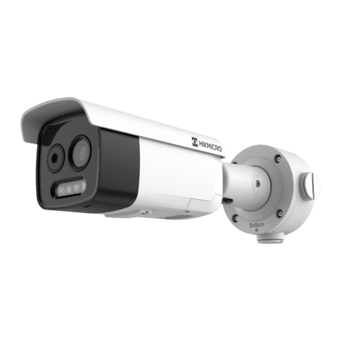 Câmara Térmica IP Dupla Hikvision Gama PRO – Sensor térmico 256×192 VOx | Lente 3.6mm – Sensor ótico 1/2.7 5Mpx | Lente 4.3mm – Sensibilidade térmica 25mK (25°C, F1.0) – Deteção e alarme preventivos de incêndios – Intervalo de medição temp -20~150ºC / ±8ºC