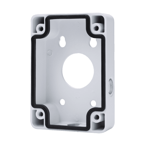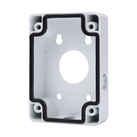 Permite alocar o alimentador, a cablagem e os acessórios da instalação no seu interior. Usado com um modelo de dome motorizada compatível, a própria placa de fixação do suporte da câmara serve de cobertura para a caixa de conexões. Fixação à parede. Permite a passagem interna dos cabos.