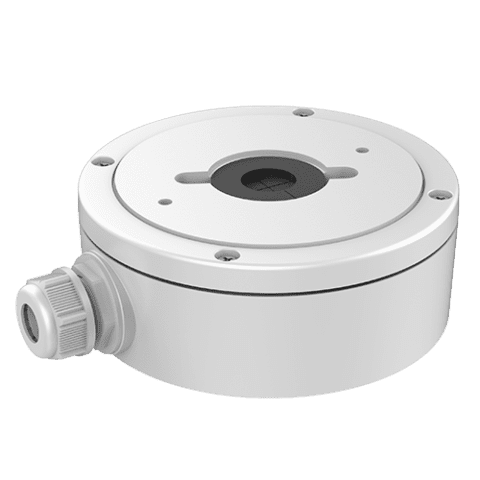 Caixa de conexões – Para câmaras dome – Apto para uso exterior – Instalação em tecto ou parede – Cor branco – Passador de cabos