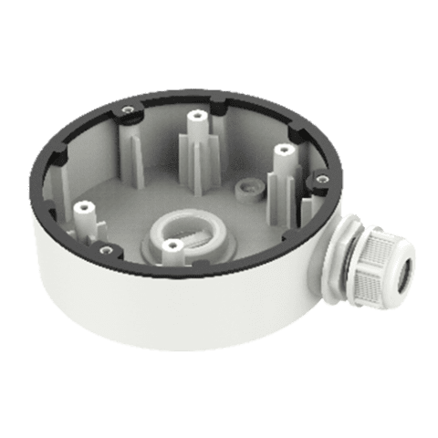 Caixa de conexões – Para câmaras dome – Apto para uso exterior – Instalação em tecto ou parede – Cor branco – Passador de cabos