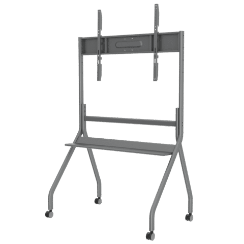 Um suporte de chão com rodas é uma estrutura que suporta um monitor no chão e tem rodas incorporadas, permitindo que o equipamento seja facilmente deslocado de um local para outro. É ideal para espaços que exigem flexibilidade e mobilidade, como apresentações ou eventos.