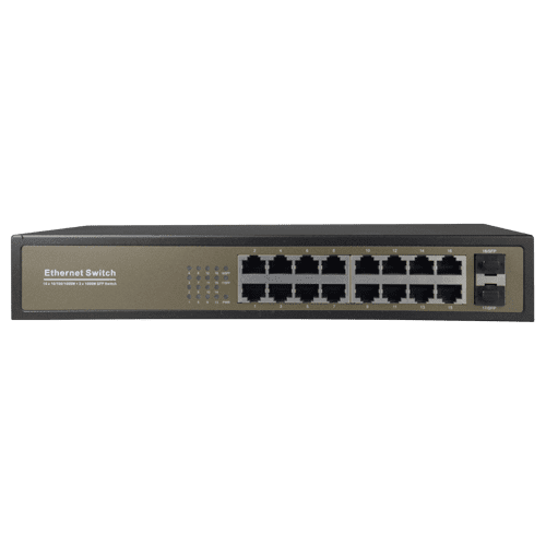 Switch de mesa – 16 porta Gigabit RJ45 – 2 SFP Uplink Port 10/100/1000 Mbps – Velocidade 10/100/1000 Mbps – Plug & Play – Tecnologia de poupança de energia