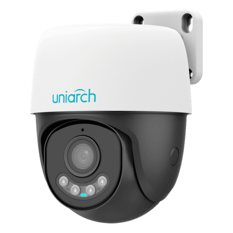 Câmara Dome Uniarch IP – 4 MP | Lente 4 mm | microSD 512 GB – Auto Tracking | Wise-ISP – Luz branca 30 m | DWDR – Wi-Fi | Microfone | Altifalante | IP66