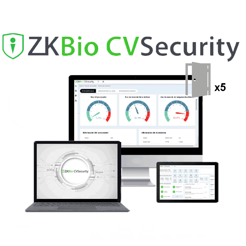 Licença de software do projeto – Módulo de controlo de acesso 5 portas – Arquitectura do Servidor/Browser – Ligações globais : Alarmes e eventos por email – Compatível com dispositivos ZKTeco (Push/Pull) – Base de dados profissional PostgreSQL