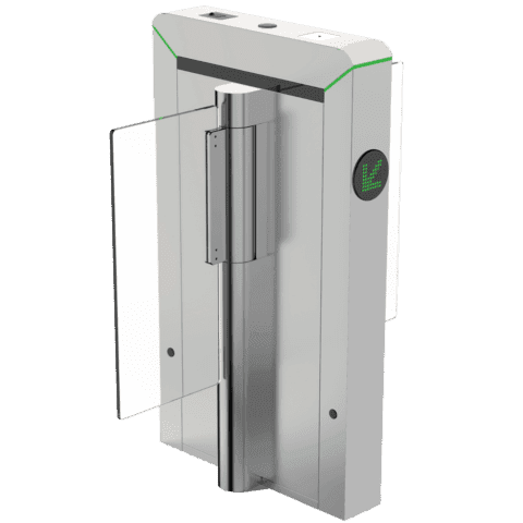 Torniquete de acesso duplo bidirecional – Portão compacto com barreira acrílica articulada – Horários, alarmes e modos de abertura – Dimensões de passo 650 mm | 5.000.000 ciclos – Fabricado em aço inoxidável SUS304 – Compatível com sistemas de terceiros